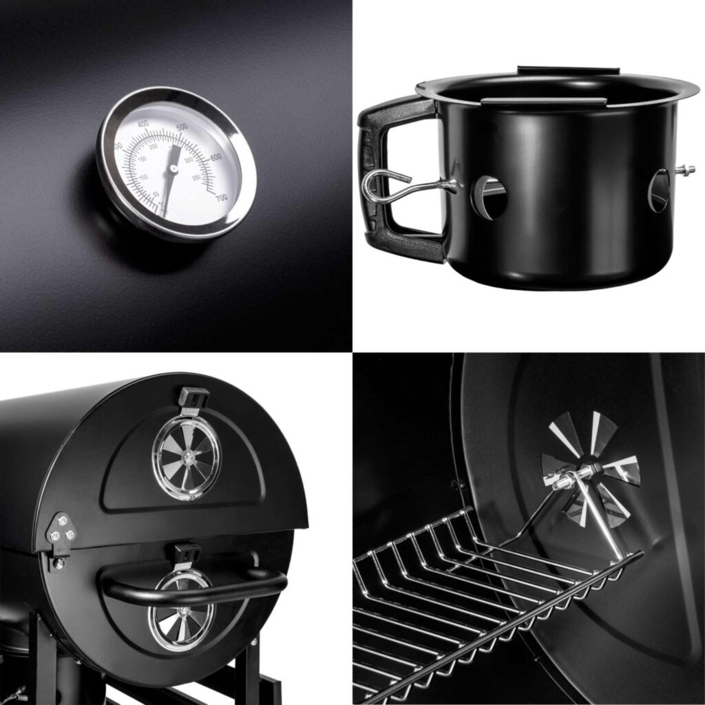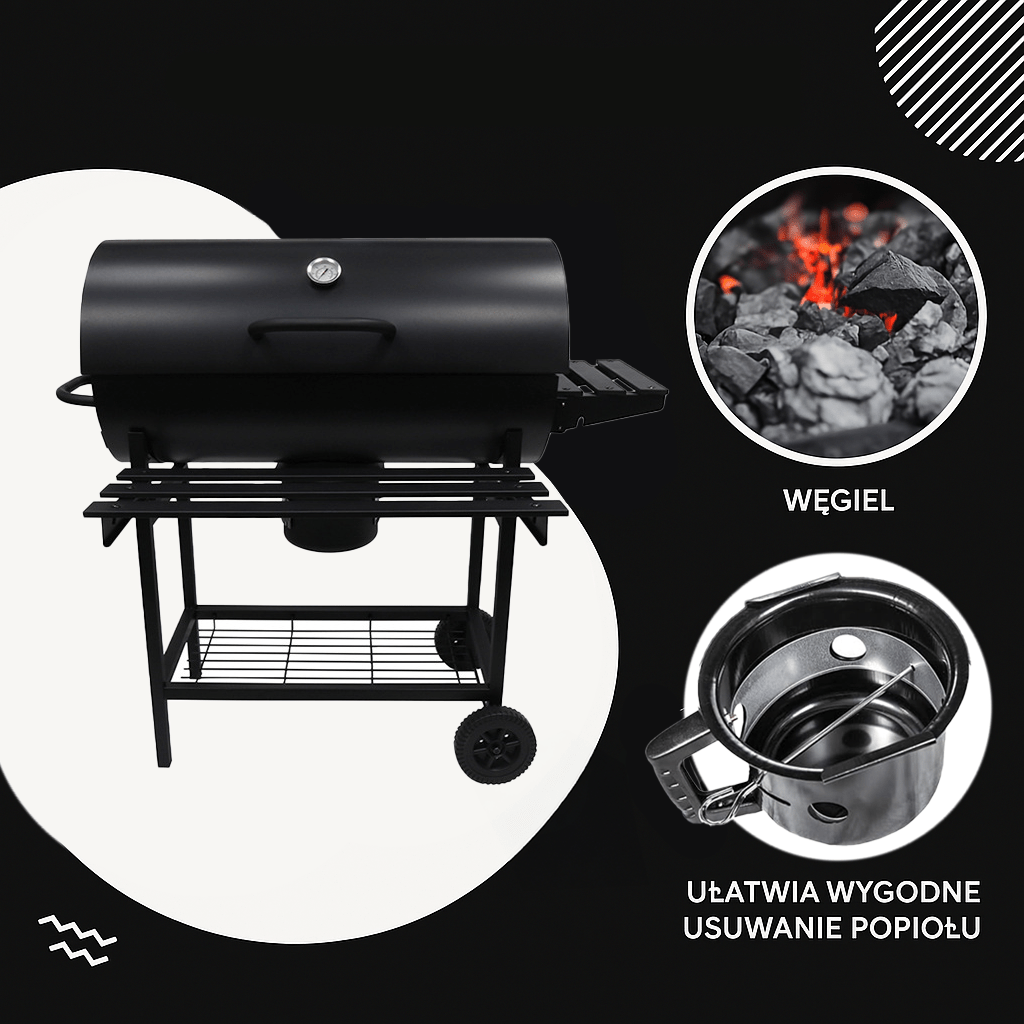 - Termometr – wbudowany wskaźnik temperatury dla perfekcyjnego grillowania.