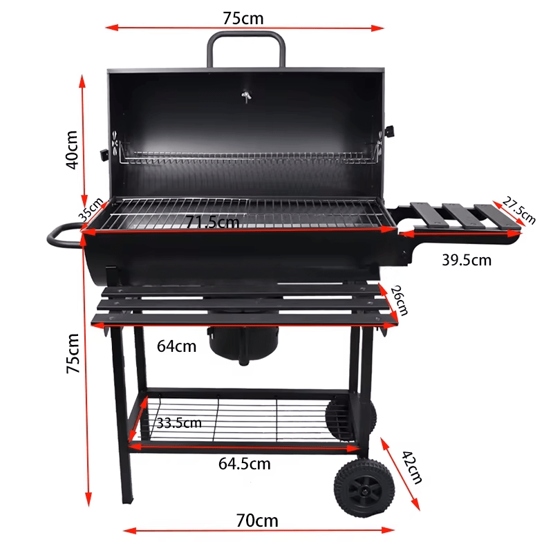- Półka – praktyczne miejsce na przyprawy, talerze i akcesoria grillowe.