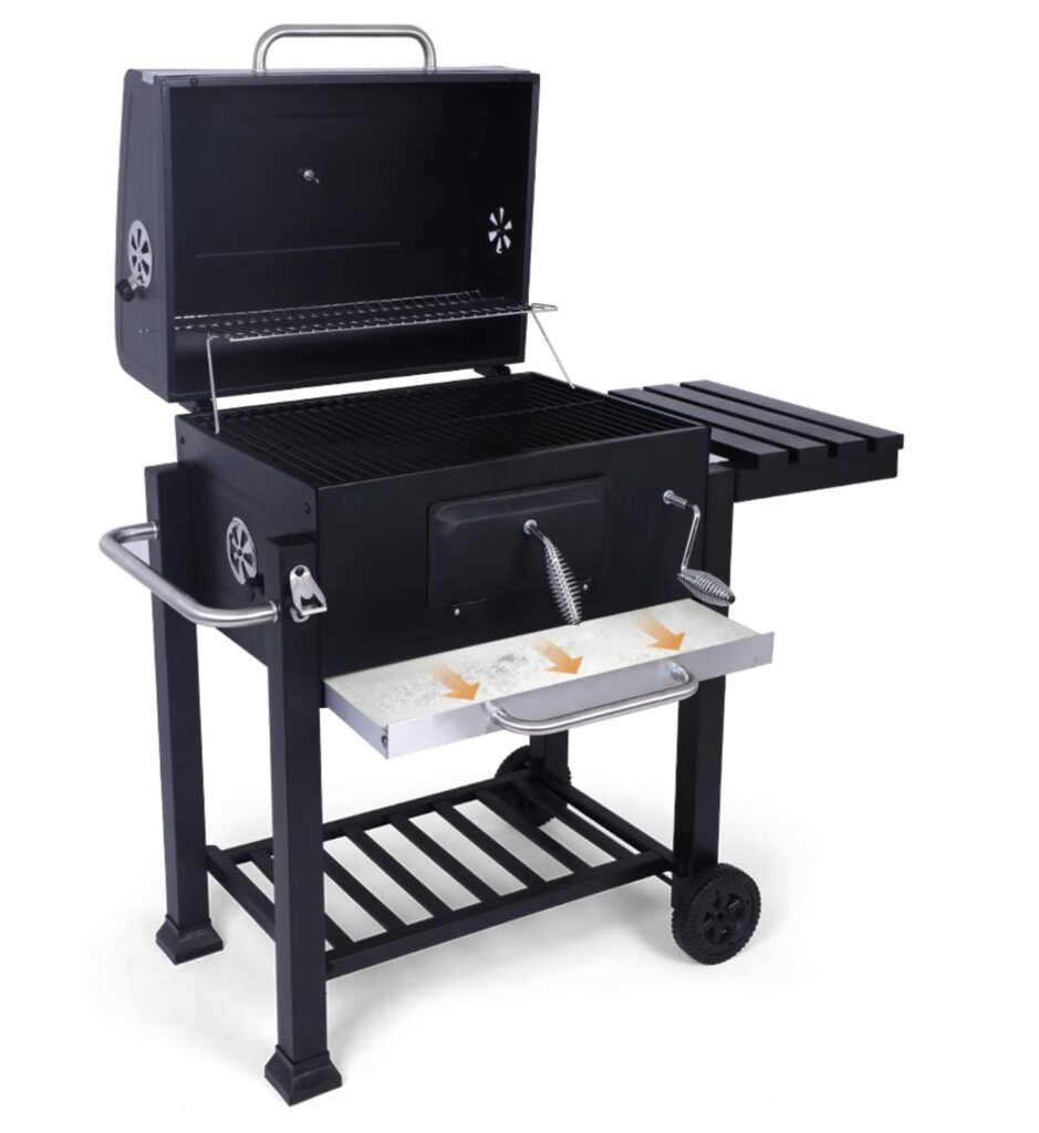 - Kółka – łatwe przemieszczanie grilla po ogrodzie lub tarasie.